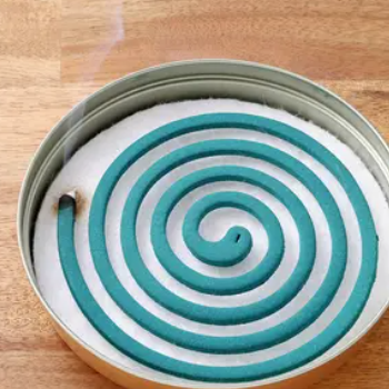 예전에 우리가 일반적으로 사용하는 모기향은 초록색의 소용돌이 형태로 끝에 불을 붙여서 사용하였습니다. 하지만, 모기향에 사용되던 초록색의 염료가 인체에 해롭다는 문제가 제기 되어 이후로는 갈색 등으로 바뀌게 되었습니다.